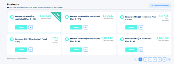 - Click on "Comparison Sheet" to select up to 4 plans to compare their benefits